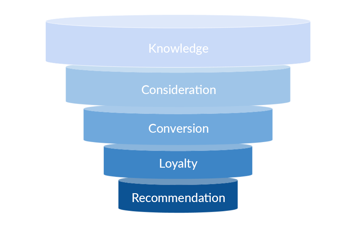 The marketing funnel is a tool that helps to identify these metrics, make sure they do not overlap and make the right efforts to know our customers at each of their maturity stages. In the digital environment, it is essential in the customer acquisition process and consists of five stages based on the customer journey: